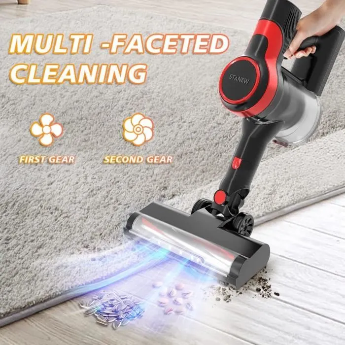Aspirateur Balai Sans Fil STANEW 4 en 1 – Puissance 12 KPa, LED et Filtration Métallique