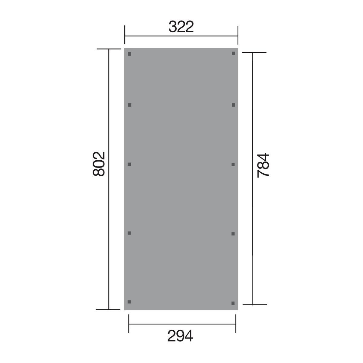 Le carport simple en bois WEKA 617 est très solide grâce à ses poteaux 12 x 12 cm, distance intérieure entre les poteaux 181 cm. Le véhicule est bien protégé en cas de neige et d’intempéries. De qualité supérieure, en pin imprégné autoclave. Avec une hauteur de passage de 215 cm et une largeur de passage de 270 cm. Sans couverture de toit. Dimensions hors tout: L.322xl.802xH.233 cm.