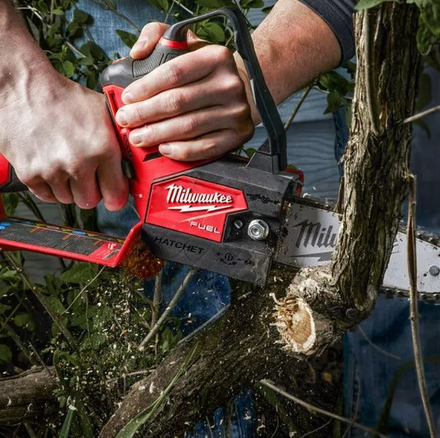 La tronçonneuse d’élagage M12 FUEL™ HATCHET™ est adaptée pour des besoins ergonomiques, de durabilité et de performance des professionnels de l’entretien paysager. Très puissante, elle coupe des bois durs jusqu’à 75 mm et permet jusqu’à 120 coupes par charge avec une batterie M12 B4. La machine bénéficie d’un poids léger de 2.3 kg et d’une forme compacte qui permet d’accéder facilement dans des zones d’accès restreint. Le tendeur de chaîne est très facile d’accès pour un ajustement rapide de la tension de la chaîne. De plus, la tronçonneuse bénéficie d’un graisseur automatique qui facilite l’utilisation et offre une lubrification optimale de la chaîne.