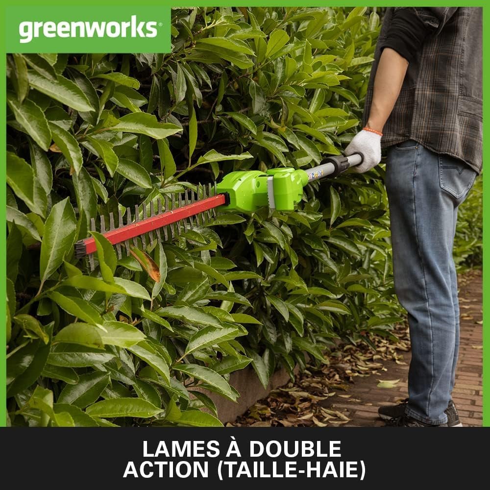 Élagueuse et Taille Haie à Batterie sur Perche 2-en-1 Greenworks G40PSHK2