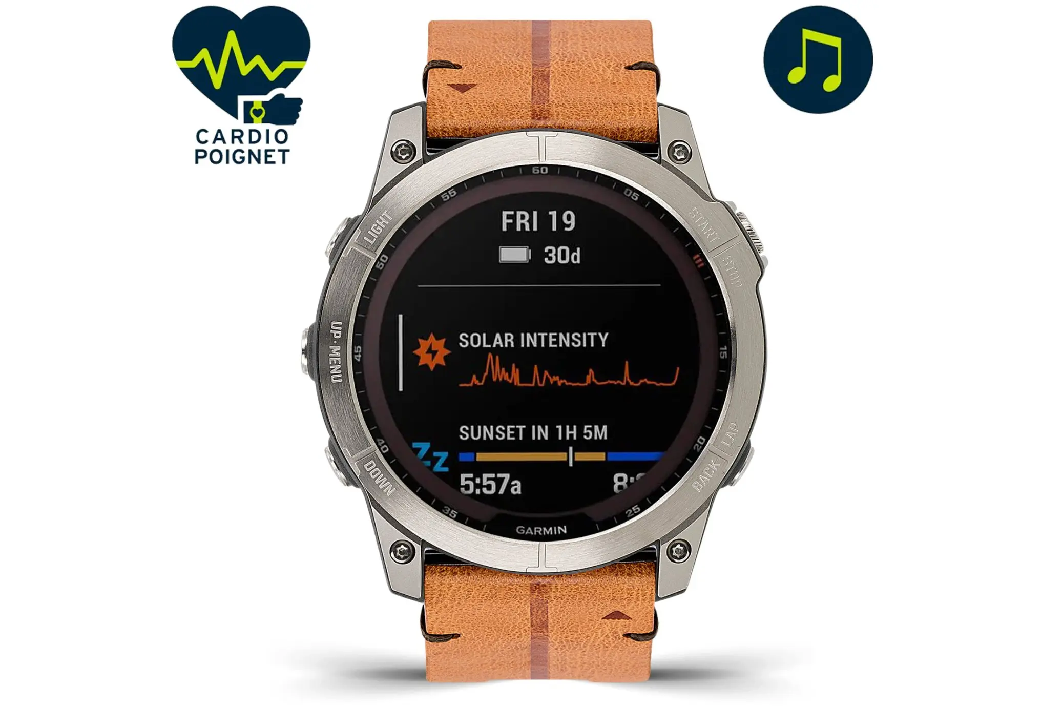 Ensuite, le boîtier en titane de la Fenix 7X est à la fois léger et robuste, offrant ainsi une grande résistance aux chocs. En outre, le verre saphir protège l’écran contre les rayures et améliore sa durabilité, tout en assurant une lisibilité parfaite, même sous une lumière intense.