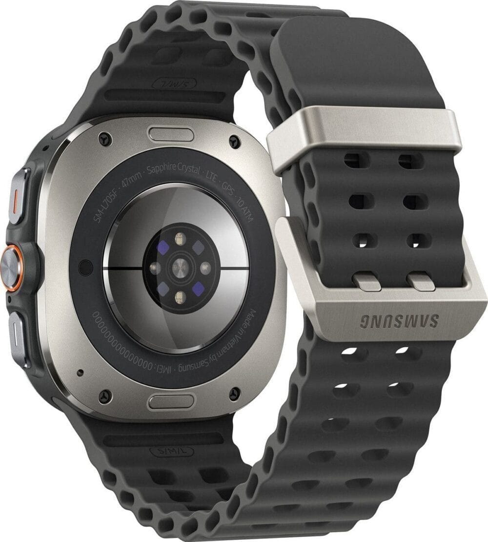 - La Samsung Galaxy Watch Ultra allie titane durable et finition gris anthracite pour un style élégant et moderne.