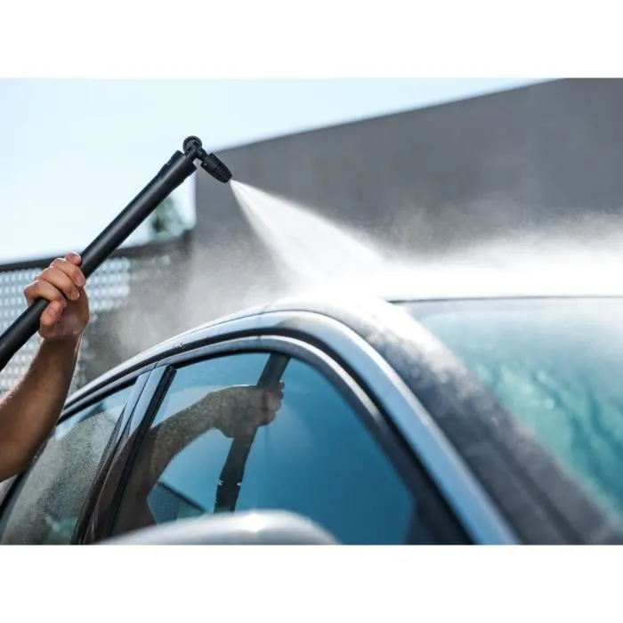 - Lance rotative : faite pivoter le pulvérisateur à la fois verticalement et horizontalement pour nettoyer les endroits difficiles à atteindre tout en évitant que le flexible ne se torde