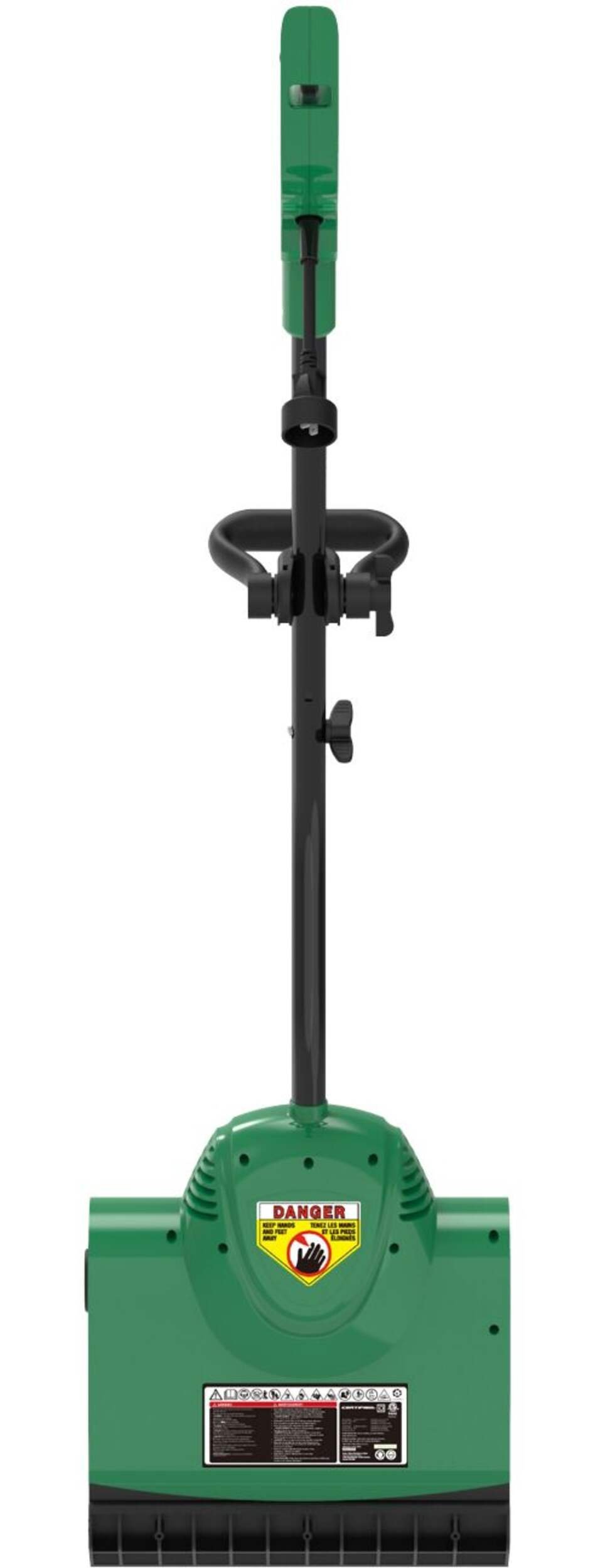 Fabriquée en plastique durable résistant à la rouille, cette pelle à neige électrique comprend une poignée brevetée ergonomique pour réduire la fatigue du dos et une lampe DEL 2 W pour une meilleure visibilité la nuit. Elle est légère, facile à assembler, ranger et transporter (poids 6 kg).