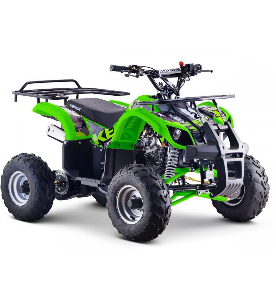 - Le quad enfant KEROX BAZOOKA est une machine imposante et puissante, spécialement conçue pour les jeunes aventuriers âgés de 16 ans et plus*. Avec des dimensions remarquables – 140 cm de long, 82 cm de large, et une hauteur de 83 cm