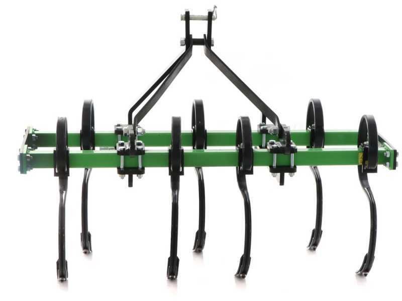 Le décompacteur AgriEuro à 5 dents Mod. 170 est une machine robuste qui, une fois attelée au tracteur grâce à l’attelage trois points, permet le décompactage (ou scrarifiage) du terrain.