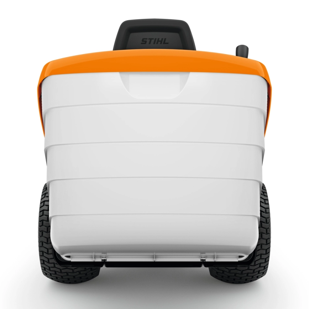 L’herbe coupée est collectée dans le bac de ramassage de 350 litres en forme de godet. Grâce au témoin de niveau de remplissage ajustable, vous savez à tout moment quand vider le bac.