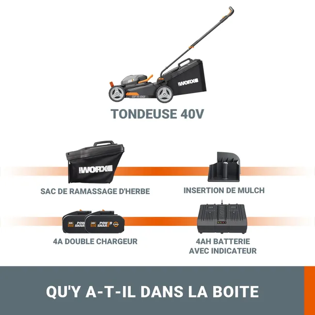 Tondeuse sur batterie WORX Wg743e 40 V