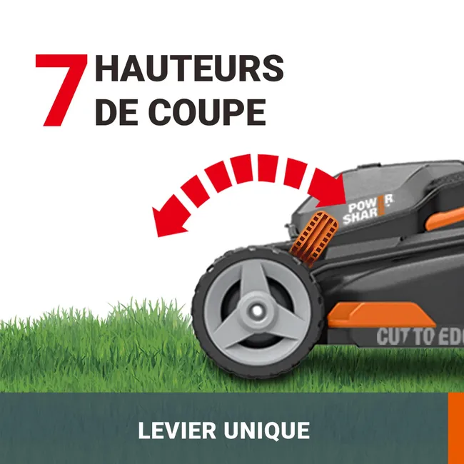 Hauteur de coupe : 20–80 mm, 7 positions