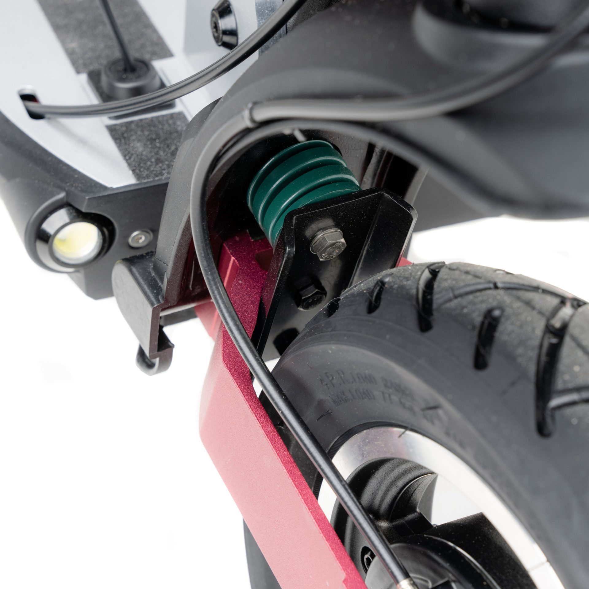La double suspension (avant + arrière) absorbe efficacement les chocs, même sur routes abîmées ou pavées. Les roues gonflables 10 pouces offrent une excellente stabilité et un vrai confort de roulage.