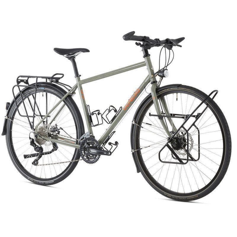 Le Genesis Tour de Fer 20 est spécialement conçu pour le cyclotourisme. Il dispose de fixations pour porte-bagages, garde-boues et porte-bidons, vous permettant de transporter facilement tout votre équipement. Ce vélo offre un excellent équilibre, même avec une charge importante, assurant ainsi un contrôle optimal.