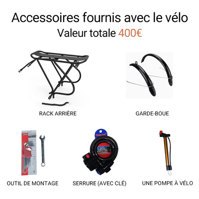Les suspensions avant et arrière absorbent les chocs efficacement. Le VTT reste stable et confortable sur tout type de terrain. La selle ergonomique améliore également le confort.