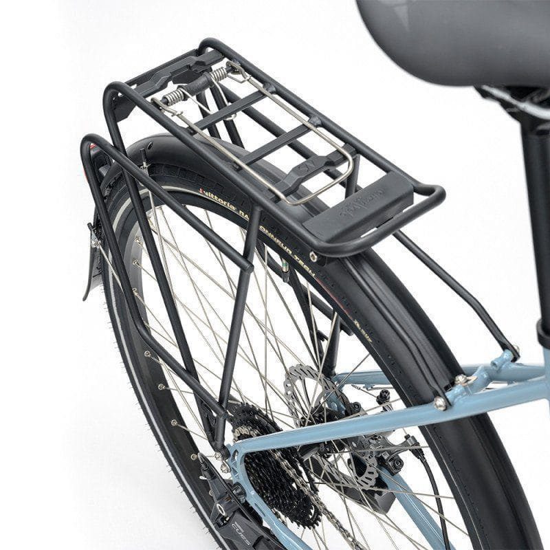Des équipements typiques d’un vélo de voyage équipent le Tour de Fer 30. Polyvalent, le Tour de Fer 30 s’adapte à vos trajets quotidiens. Les garde-boue protègent efficacement des éclaboussures, en ville comme à la campagne. De plus, Genesis a prévu deux porte-bagages pour un chargement optimal. Le rack arrière, compatible AVS, accueille un bagage supplémentaire. Enfin, une béquille, des éclairages Busch & Müller et un moyeu à dynamo complètent l’équipement.
